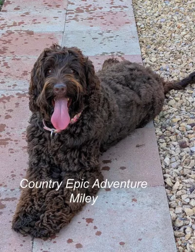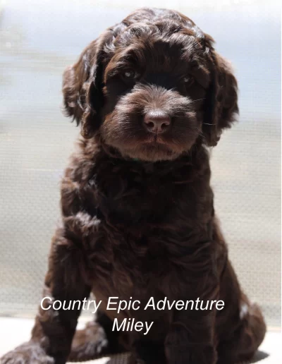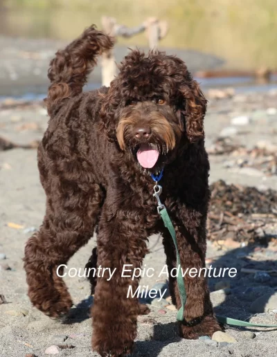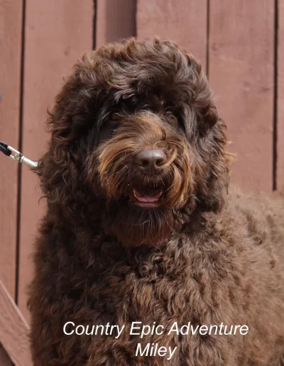 Miley is well balanced and a sound representation of a quality Australian labradoodle. Her litter brother is making his mark as a breeding dog developing the breed in another country. We are proud to have our dogs be a part of the breed history.