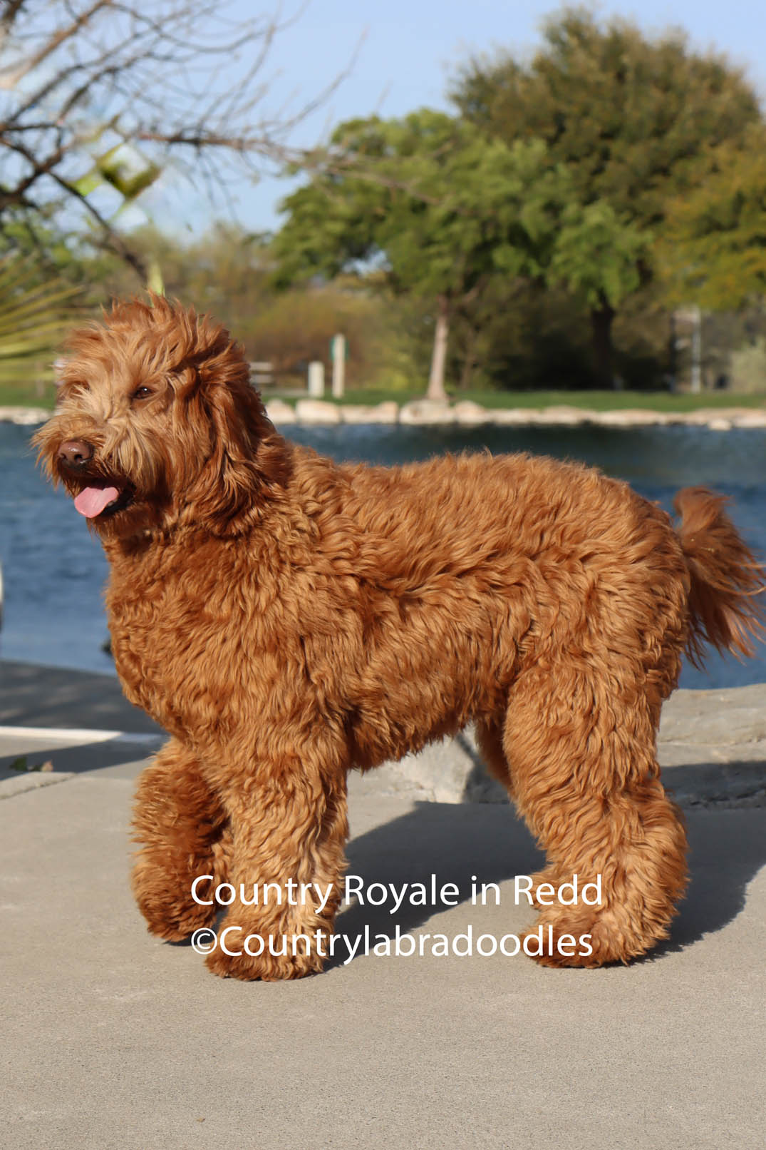 We expect All Shades of Red Labradoodles with wavy fleece and slightly curly coats. Non Shedding allergy friendly.
